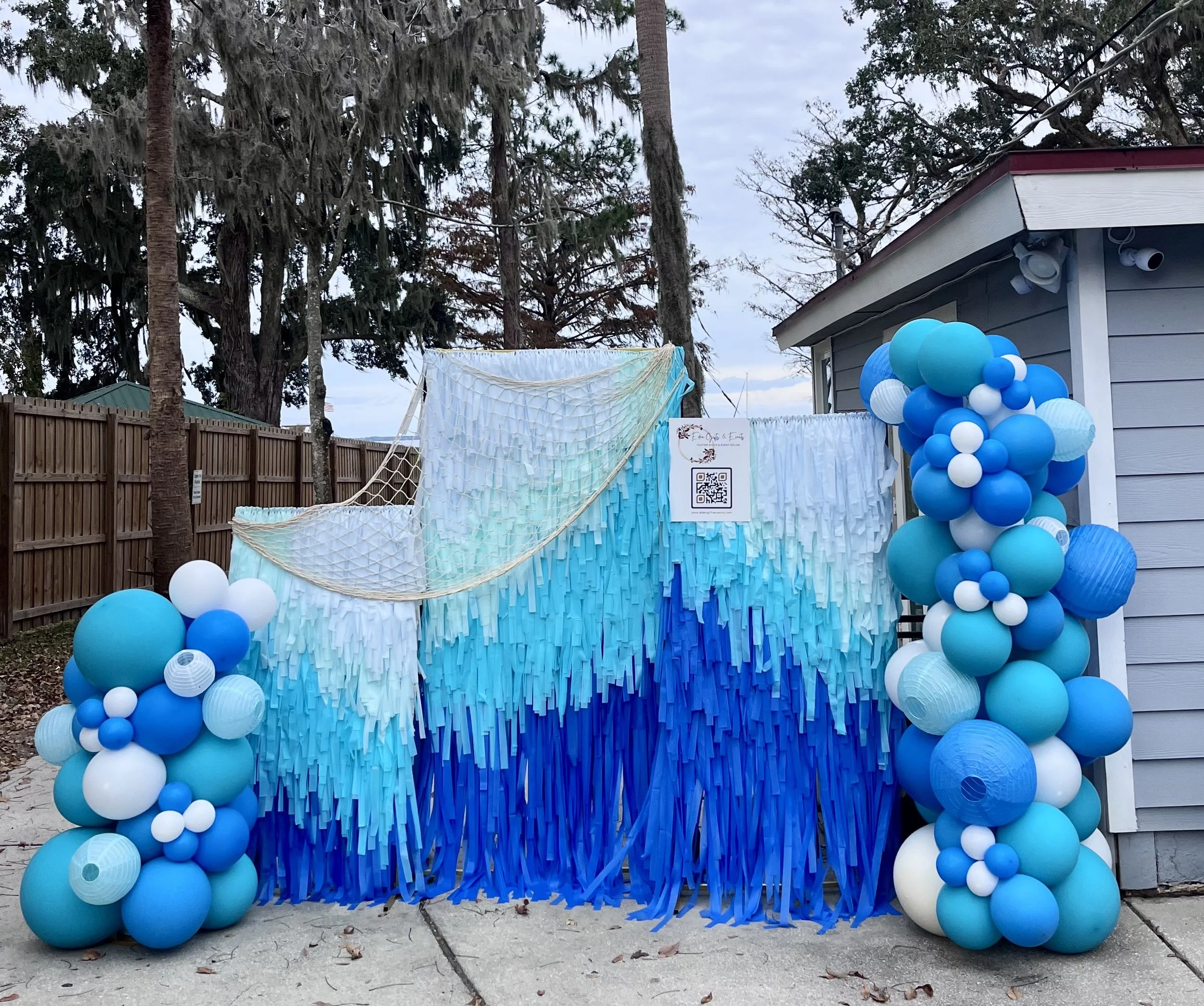 Nothing gets the party started quite like a fringe backdrop. It’s festive and fun, stands up to rain and sun, and it’s reusable! Add fun prints, shimmering metallics, or keep your custom fringe backdrop simple with solids. You can also save money by renting a pre-made fringe backdrop!